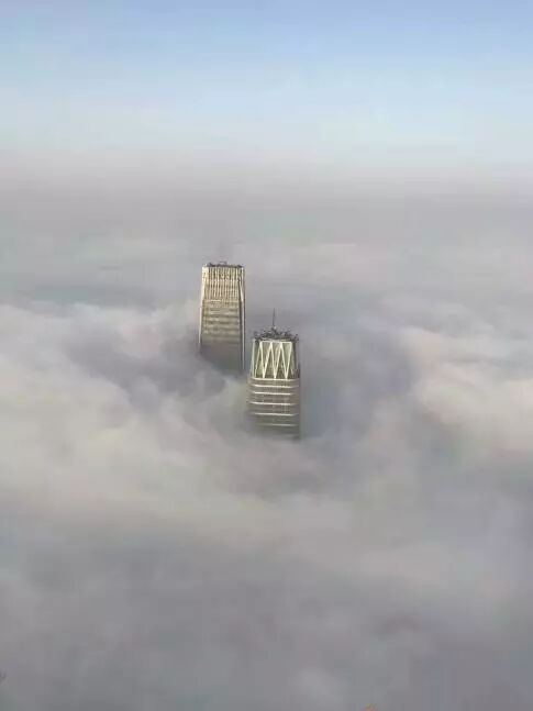 从图14照片看出,大雾是有边界的,图15照片中的雾霾是没有边界的。图15是从528米的中国尊拍摄330米的北京市世贸大厦,从照片中可以大致计算出严重雾霾的高度在300米以下。两张照片充分说明了地面水蒸汽并不是毫无限制的向高空扩散的。